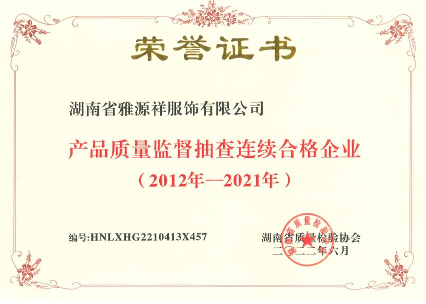 產品質量監(jiān)督抽查連續(xù)合格...